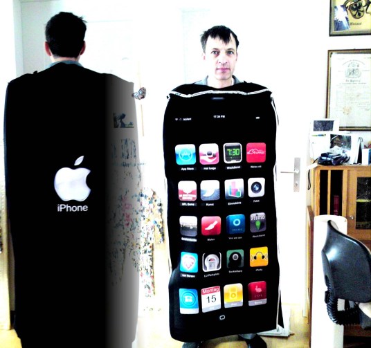 'Me as my iPhone', a reveller in Luzern dressed for Fasnacht, the Swiss winter carnival (photographs by Walter Wieland)