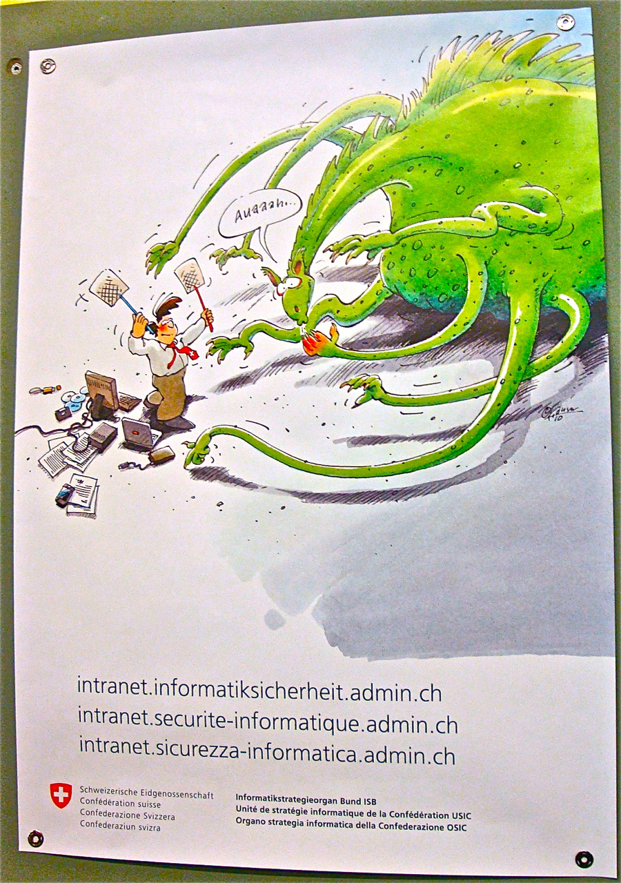 postgutenberg@gmail.com Published 21/05/2013 at 900 × 1280 in The message from ‘High tech’s missionaries of sloppiness’ about blogging’s future status is encouraging. As for its transformation of computer (in)security – bah! One child of flawed computer software: poster in an office of the Swiss Federal Department of Foreign Affairs, Bern, postgutenberg@gmail.com