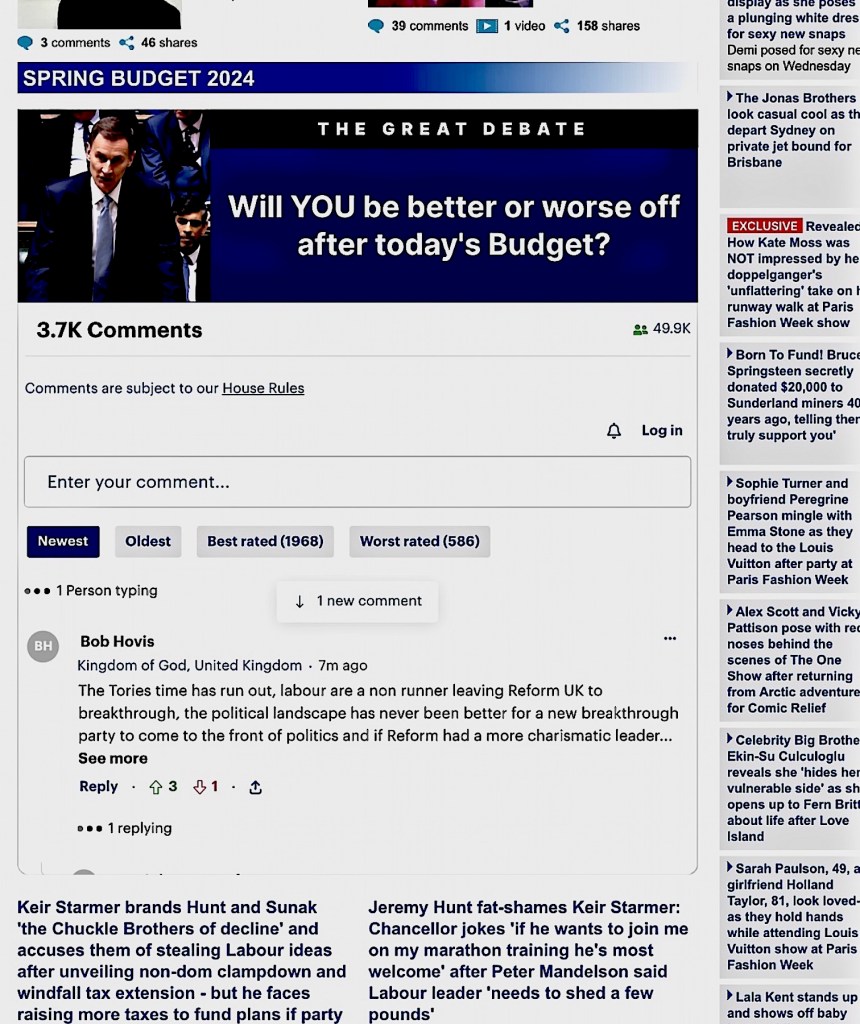 or ‘interactive’ audiences who are no longer mere receivers for broadcasts by newspaper reporters and opinion writers. On 6 March, anyone popping in at the online Daily Mail would have noticed an apparent experiment — placing at the centre of its home page a blank commenting box inviting readers to have their say on the U.K. government’s spring taxation and budget announcement.