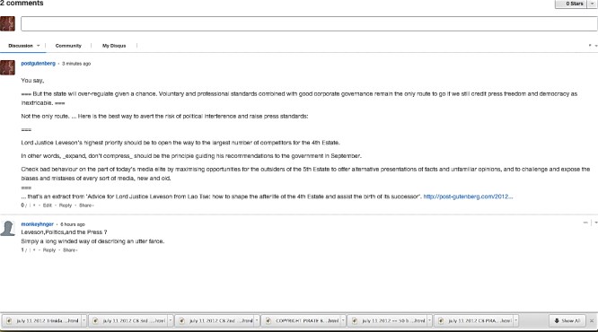 The Independent, a ‘liberal’ London newspaper, declined to publish a reader’s comment on press reform linked to a post here, ‘Advice for Lord Justice Leveson from Lao Tse: how to shape the afterlife of the 4th Estate and assist the birth of its successor.’